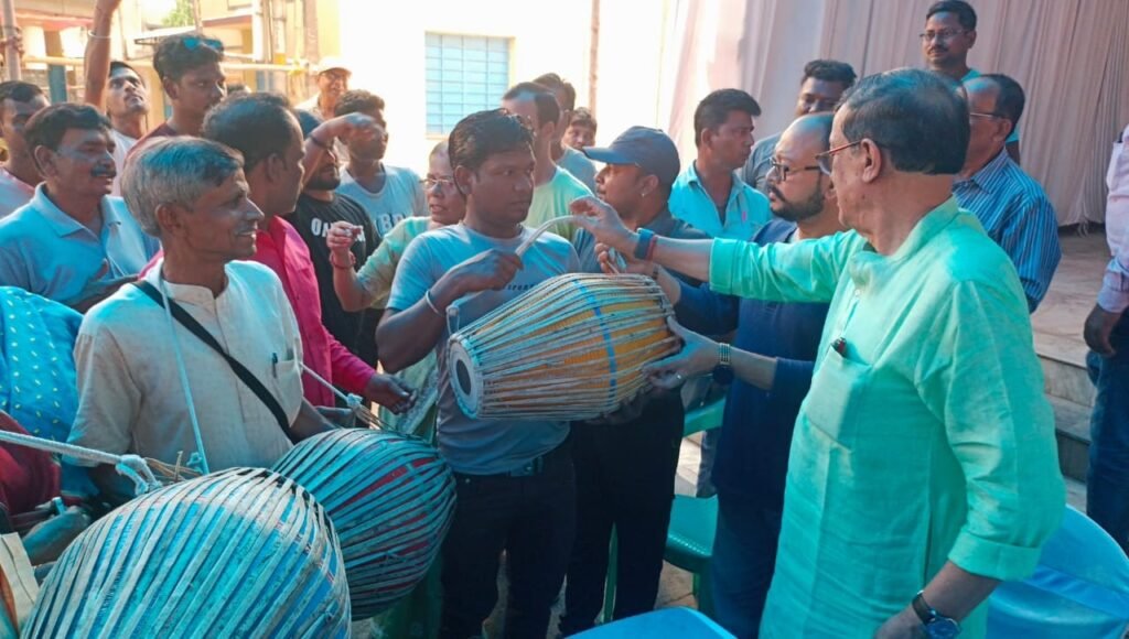 पब्लिक न्यूज आसनसोल :– आसनसोल उत्तर के विधायक और राज्य के कानून तथा श्रम मंत्री मलय घटक आज अपने उत्तर विधानसभा क्षेत्र के गोपालपुर इलाके में पहुंचे यहां पर उन्होंने हरि नाम संकीर्तन करने वाले मंडली को ढोलक और मंजीरा प्रदान किया इस मौके पर अपना वक्तव्य रखते हुए मंत्री ने कहा कि यह फैसला लिया गया था कि आसनसोल उत्तर विधानसभा क्षेत्र अंतर्गत जितने भी हरिराम संकीर्तन मंडली है उनको ढोलक और मंजीरा प्रदान किया जाएगा आज इसी क्रम में वह यहां पर आए हैं और यह ढोलक पर मंजीरा प्रदान कर रहे हैं उन्होंने कहा कि नगर संकीर्तन बंगाल की बहुत पुरानी परंपरा है लेकिन जैसे-जैसे हम आधुनिकता की तरफ बढ़ रहे हैं हम कहीं ना कहीं अपनी परंपराओं से दूर हटते जा रहे हैं इसे देखते हुए यह कार्यक्रम किया जा रहा है ताकि हम अपने जड़ों से जुड़े और इसी सोच को ध्यान में रखते हुए यह कार्यक्रम किया जा रहा है इस मौके पर यहां बोरो चेयरमैन अनिमेष दास पार्षद अर्जुन मांझी के अलावा अन्य स्थानीय निवासी उपस्थित थे