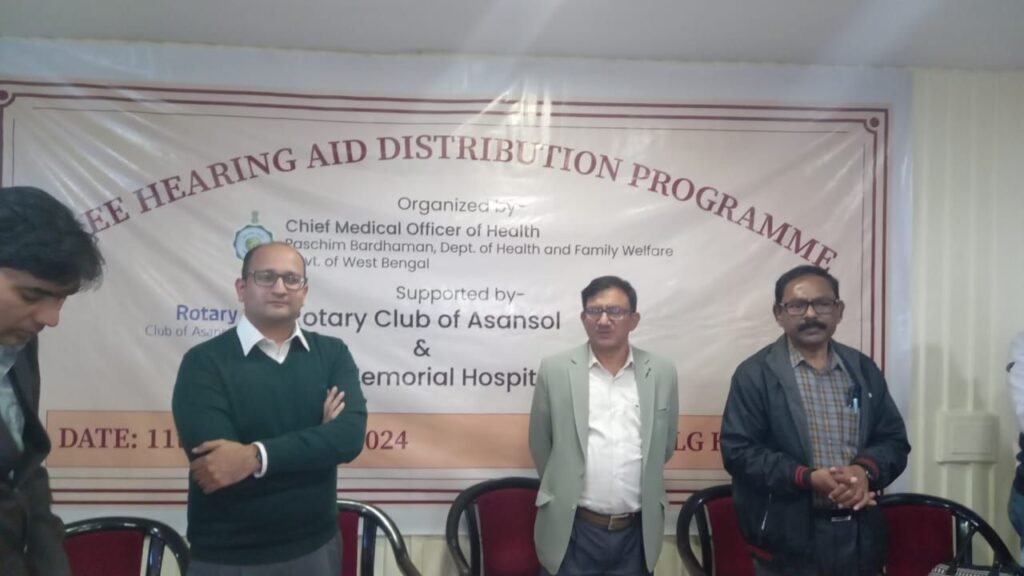 पब्लिक न्यूज़ आसनसोल:– आसनसोल के एचएलजी हॉस्पिटल में आज एक कार्यक्रम का आयोजन किया गया जिसमें 42 जरूरतमंद परिवारों से आने वाले लोगों को कान की मशीन प्रदान की गई इस मौके पर यहां पश्चिम वर्धमान जिले के मुख्य स्वास्थ्य अधिकारी डॉक्टर यूनुस एचएलजी हॉस्पिटल के डायरेक्टर अभिषेक गुप्ता रोटरी क्लब आफ आसनसोल के अध्यक्ष अभय जयंत भी उपस्थित थे इस बारे में जिले के मुख्य स्वास्थ्य अधिकारी डॉक्टर यूनुस ने बताया कि आज एचएलजी अस्पताल की तरफ से तथा रोटरी क्लब आफ आसनसोल के सहयोग से 42 लोगों को कान की मशीन प्रदान की गई उन्होंने कहा कि पश्चिम बर्धमान जिला मुख्य स्वास्थ्य दफ्तर के पास यह आवेदन आए थे लेकिन इस तरह का कोई फंड नहीं होने की वजह से दफ्तर द्वारा एचएलजी अस्पताल और रोटरी क्लब आफ आसनसोल से संपर्क किया गया और आज 42 जरूरतमंद परिवारों से आने वाले लोगों को यह कान की मशीन प्रदान की गई वहीं इस बारे में अस्पताल के डायरेक्टर अभिषेक गुप्ता ने बताया कि उनके अस्पताल की तरफ से समय-समय पर इस तरह के सामाजिक कार्य किए जाते रहते हैं जिले के मुख्य स्वास्थ्य दफ्तर की तरफ से एक आवेदन आया था जिसमें 42 लोगों को कान की मशीन प्रदान करने के लिए अनुरोध किया गया था। उस पर आज यह कार्यक्रम किया जा रहा है इसमें रोटरी क्लब आफ आसनसोल का भी सहयोग है उन्होंने कहा कि एचएलजी हॉस्पिटल की एक कोशिश रहती है कि वह समाज के उस वर्ग को सीधा लाभ पहुंचा सके जो आर्थिक रूप से उतने सक्षम नहीं है इस वजह से आज यह कार्यक्रम किया गया और आने वाले समय में भी इस तरह का कार्यक्रम किया जाएगा वही रोटरी क्लब आफ आसनसोल के वर्तमान अध्यक्ष अभय जयंत ने कहा के उनके संगठन की तरफ से वैसे भी लगातार सामाजिक कार्य किए जाते रहते हैं और सरकार के साथ मिलकर यह कार्यक्रम किया जा रहा है जिसमें एचएलजी हॉस्पिटल का भी सहयोग है। उन्होंने कहा कि अगर भविष्य में भी इस तरह से किसी जरूरतमंद व्यक्ति को किसी चीज की आवश्यकता होती है तो उनके संगठन की तरफ से वह उपलब्ध कराया जाएगा