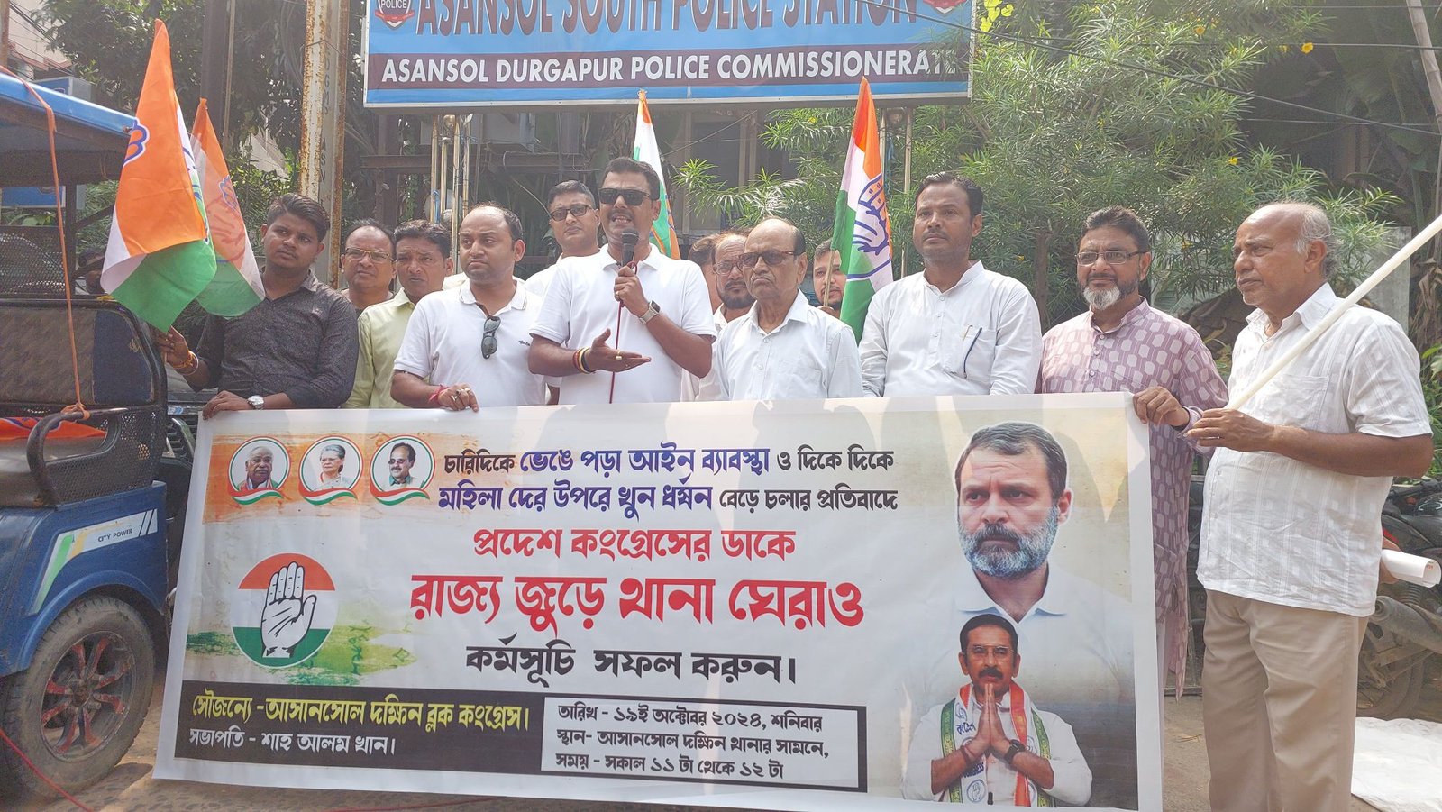 पब्लिक न्यूज़ आसनसोल:– कोलकाता के आरजी कर सहित बंगाल के विभिन्न इलाकों में जिस तरह से महिलाओं पर आए दिन अत्याचार और उनके साथ आपराधिक घटनाएं घट रही हैं उसके खिलाफ आज प्रदेश कांग्रेस की तरफ से पूरे राज्य में थाना घेराव कार्यक्रम का आयोजन किया गया इस कड़ी में आज आसनसोल दक्षिण थाने के सम्मुख भी कांग्रेस नेताओं और कार्यकर्ताओं द्वारा बड़े पैमाने पर विरोध प्रदर्शन किया गया और राज्य सरकार तथा पुलिस विरोधी नारे लगाए गए इस मौके पर आरजी कर सहित विभिन्न मामलों में जिस तरह से पूरे राज्य में महिलाओं पर अत्याचार हो रहे हैं उनके साथ तमाम तरह की आपराधिक घटनाएं घटाई जा रही हैं उसके लिए सीधे तौर पर राज्य सरकार टीएमसी और पुलिस प्रशासन को जिम्मेदार ठहराया गया इस मौके पर यहां कांग्रेस नेता प्रसनजीत पुईतुंडी शाह आलम सहित बड़ी संख्या में कांग्रेस नेता और कार्यकर्ता उपस्थित थे इनका कहना है कि जिस तरह से पूरे राज्य में महिला मुख्यमंत्री होने के बावजूद भी महिलाएं सुरक्षित नहीं है यह शर्म की बात है इसके साथ ही उन्होंने पुलिस पर भी कटाक्ष करते हुए कहा कि पुलिस का काम तृणमुल कांग्रेस के चोर नेताओं को सुरक्षा प्रदान करना नहीं बल्कि राज्य में कानून व्यवस्था को दुरुस्त रखना महिलाओं सहित आम जनता की सुरक्षा सुनिश्चित करना है आज कांग्रेस की तरफ से आसनसोल दक्षिण थाने के प्रभारी को ज्ञापन सौंपने की बात थी लेकिन जब कांग्रेस कार्यकर्ता आसनसोल दक्षिण थाने पहुंचे तो वहां पर ना तो आसनसोल दक्षिण थाने के प्रभारी थे और नहीं सेकंड ऑफिसर थी इसे लेकर कांग्रेस नेता और कार्यकर्ता उत्तेजित हो गए और थाना के प्रवेश पथ पर बैठ गए और जमकर पुलिस विरोधी नारेबाजी करने लगे इसके उपरांत जब अन्य पुलिस कर्मियों द्वारा उन्हें हटाने की कोशिश की गई तो पुलिस कर्मियों के साथ कांग्रेस नेताओं और कार्यकर्ताओं की झड़प हो गई आखिरकार आसनसोल दक्षिण थाना प्रभारी कौशिक कुंडू थाने पहुंचे और कांग्रेस का एक प्रतिनिधिमंडल उनसे मिला और ज्ञापन सौंपा