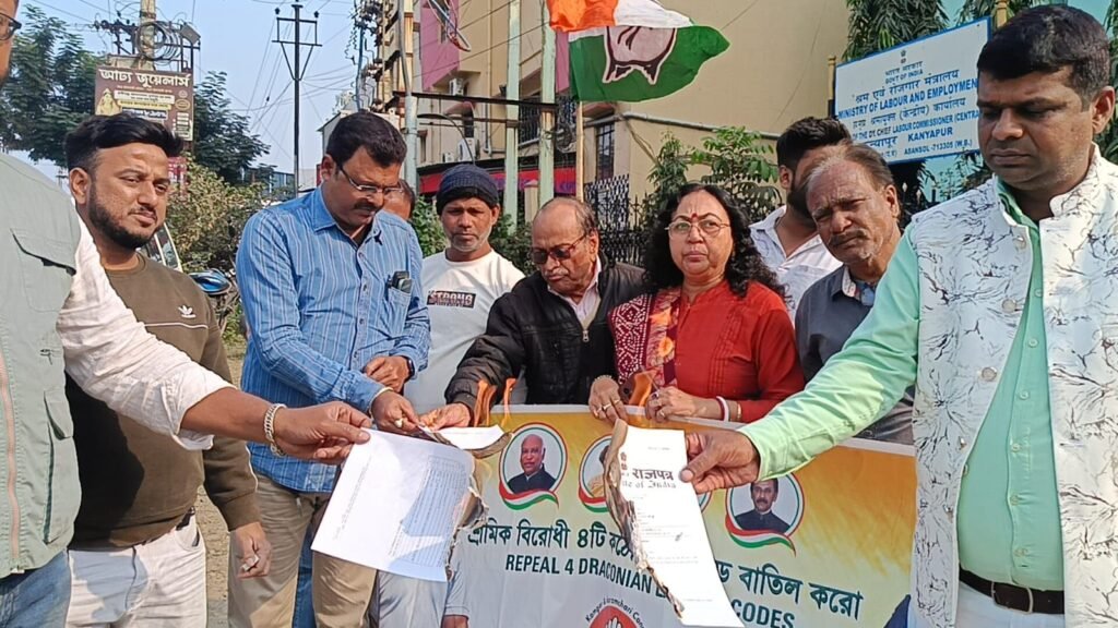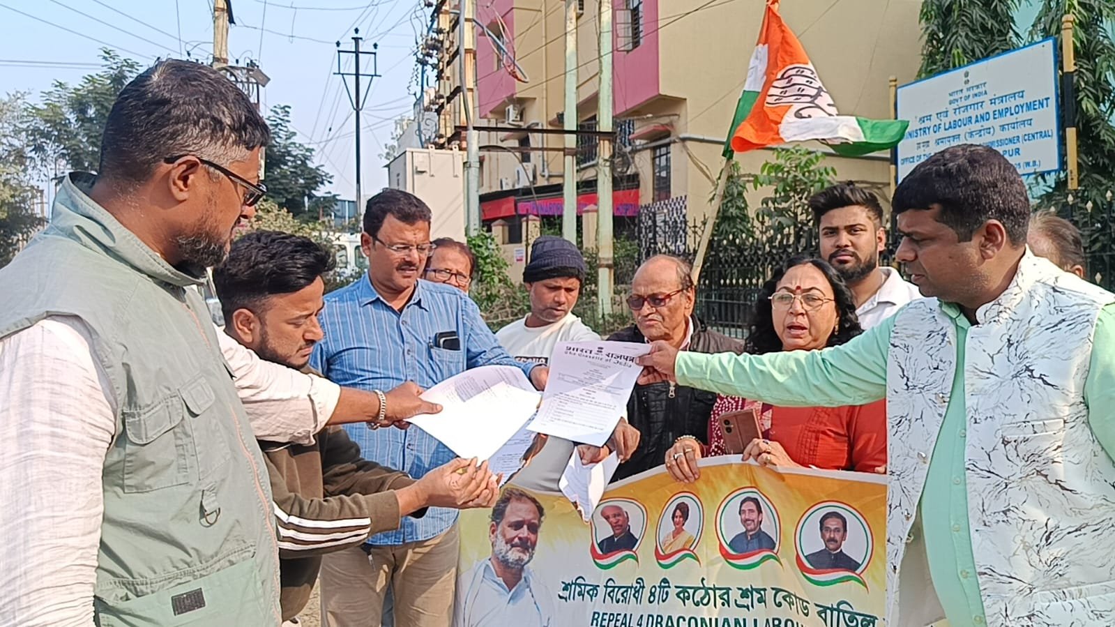 पब्लिक न्यूज भरत पासवान आसनसोल : हाल ही में केंद्र सरकार की तरफ से चार श्रम कोड लागू किए गए हैं। इसका विरोध करते हुए बुधवार को कांग्रेस की तरफ से प्रदर्शन कर लेबर कमिश्नर ऑफिस में ज्ञापन सौंपा गया। इस मौके पर कांग्रेस नेता शाह आलम, प्रसेनजीत पुईतंडी के अलावा अन्य कांग्रेस नेता और कार्यकर्ता उपस्थित थे। वहीं कांग्रेस कर्मियों ने केंद्र सरकार द्वारा 21 तारीख को चार श्रम कोड लागू करते हुए जो नोटिफिकेशन जारी किया गया था उसकी प्रति को जलाया। इस बारे में पत्रकारों को जानकारी देते हुए शाह आलम ने बताया कि कांग्रेस द्वारा केंद्र सरकार द्वारा जारी किए गए चार श्रम कोड का विरोध किया गया। उन्होंने कहा कि श्रमिकों के बहुत सालों के संघर्ष के बाद उन्हें कई अधिकार प्राप्त हुए थे लेकिन केंद्र सरकार उन अधिकारों का हनन करने के लिए चार श्रम कोड लेकर आई है। इसके जरिए श्रमिकों को फिर से 12 घंटे काम करना पड़ेग। श्रमिकों के पास कोई अधिकार नहीं रहेंगे। मालिक पक्ष अगर चाहेगा तो एक बार में कई श्रमिकों को नौकरी से निकल सकता है। इन सब मुद्दों के खिलाफ कांग्रेस द्वारा लेबर कमिश्नर ऑफिस को ज्ञापन सौंपा गया और केंद्र सरकार से मांग की गई कि तुरंत चार श्रम कोड निरस्त किया जाए।