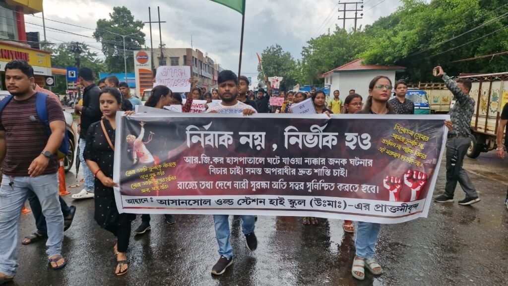 पब्लिक न्यूज़ ब्यूरो आसनसोल:–कोलकाता में आरजी कर मेडिकल कॉलेज अस्पताल में महिला डॉक्टर के साथ बलात्कार और उनकी हत्या के खिलाफ आज ओल्ड स्टेशन स्कूल के पूर्व विद्यार्थियों ने एक विरोध रैली निकाली और इंसाफ की मांग की। यह रैली ओल्ड स्टेशन स्कूल से निकलकर आसनसोल नगर निगम चौराहे तक पहुंची इस मौके पर यहां पुलिस स्टेशन स्कूल के बड़ी संख्या में विद्यार्थी शामिल थे।