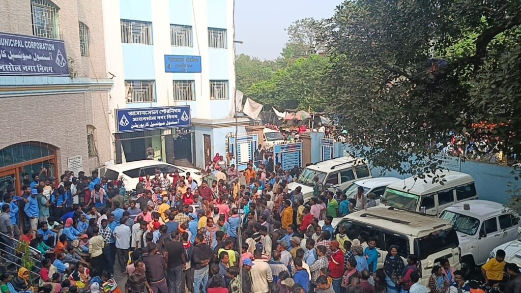 पब्लिक न्यूज़ आसनसोल :– पूर्व निर्धारित कार्यक्रम के अनुसार आज आसनसोल नगर निगम में मेयर विधान उपाध्याय के चेंबर में सफाई कर्मचारियों के वेतन वृद्धि को लेकर बैठक हुई इस बैठक में मेयर विधान उपाध्याय के अलावा चेयरमैन अमरनाथ चटर्जी सेनेटरी विभाग के एम एम आई सी मानस दास गुरदास चटर्जी कमिश्नर राजू मिश्रा तथा अन्य अधिकारी उपस्थित थे यहां पर सफाई कर्मचारियों के एक प्रतिनिधिमंडल के साथ नगर निगम के पदाधिकारीयों की बैठक हुई। बैठक में नगर निगम द्वारा सफाई कर्मचारियों के ईएसआई प्रोविडेंट फंड सहित परिचय पत्र देने की मांगों को मान लिया गया लेकिन वेतन वृद्धि को लेकर दोनों पक्षों में सहमति नहीं बन पाई एक तरफ जहां सफाई कर्मचारी अपना वेतन कम से कम महीने में ₹15000 करने की मांग पर अड़े हुए हैं वहीं नगर निगम द्वारा उन्हें बताया गया की सफाई कर्मचारियों को अभी प्रतिदिन 347 के हिसाब से मिलता है इसे ज्यादा से ज्यादा प्रतिदिन 393 रुपए किया जा सकता है लेकिन सफाई कर्मचारियों का प्रतिनिधिमंडल इसे मानने को राजी नहीं था जब आसनसोल नगर निगम परिसर में मौजूद सैकड़ो सफाई कर्मचारियों को नगर निगम के इस फैसले का पता चला तो उन लोगों ने व्यापक आंदोलन शुरू कर दिया