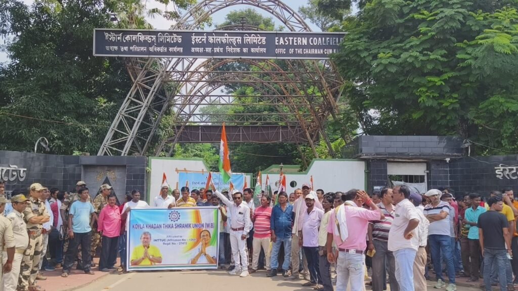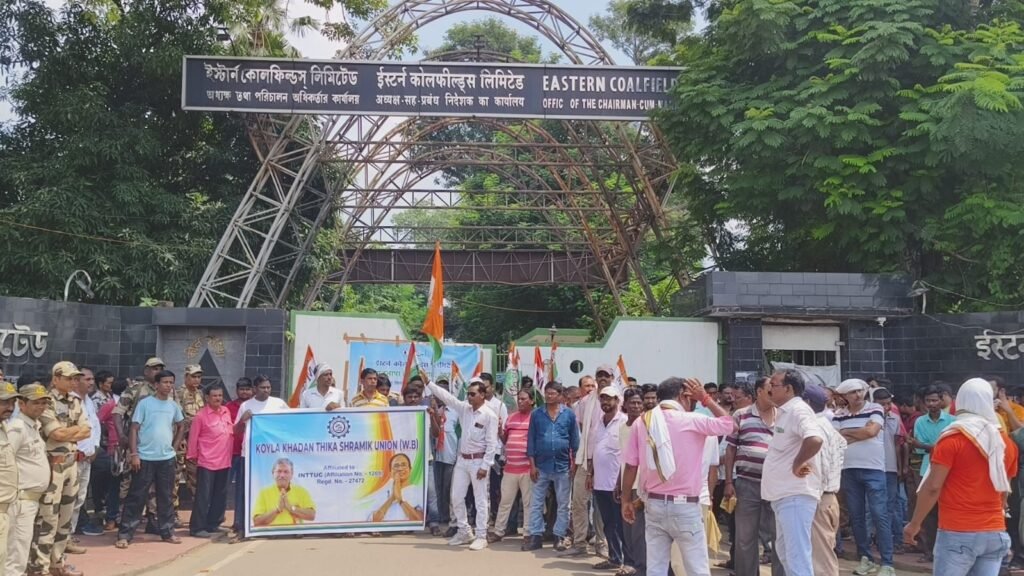 पब्लिक न्यूज ब्यूरो आसनसोल:–तीन महीने से ईसीएल खदानों में ठेका मजदूरों को वेतन नहीं मिलने के कारण शनिवार की सुबह से कोयला खदान ठेका श्रमिक संघ के सदस्यों ने सांकटोरिया स्थित ईसीएल के प्रधान कार्यालय के मुख्य द्वार के सामने सड़क जाम कर विरोध प्रदर्शन किया. ठेका श्रमिकों ने बार-बार वेतन की मांग को लेकर खदान अधिकारियों से संपर्क किया था, लेकिन खदान अधिकारियों को शनिवार को कोई कार्रवाई नहीं करनी पड़ी और उन्होंने मुख्यालय के सामने मुख्य द्वार के सामने विरोध प्रदर्शन किया। खबर मिलने के बाद तृणमूल श्रमिक संगठन आईएनटीटीयूसी के जिला अध्यक्ष और आसनसोल नगर निगम के डिप्टी मेयर अभिजीत घटक, तृणमूल कांग्रेस के जिला अध्यक्ष नरेंद्र नाथ चक्रवर्ती ।