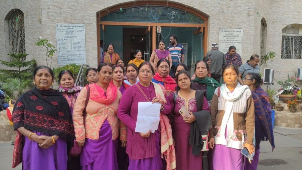 पब्लिक न्यूज भरत पासवान आसनसोल : आसनसोल नगर निगम के अंतर्गत काम करने वाली आशा कर्मी लगातार पिछले लंबे समय से अपनी मांगों को लेकर आंदोलन कर रही है। आशा कर्मी मांगों को लेकर आसनसोल नगर निगम तथा जिले के मुख्य स्वास्थ्य अधिकारी सहित प्रशासन के विभिन्न स्तर के अधिकारियों के सामने गुहार लगा रही थी लेकिन जब उनकी मांगे नहीं मानी गई तो उन्होंने फैसला किया कि मंगलवार से वह अनिश्चितकाल के लिए हड़ताल पर जाने वाली है। इसे लेकर कई आशा कर्मी आसनसोल नगर निगम कार्यालय आई थी। आशा कर्मियों ने बताया कि लंबे समय से उनकी मांगों पर कोई पहल नहीं हो रहा है। कई बार प्रशासन के विभिन्न स्तरों पर अपनी बात रखी है लेकिन उनकी मांगों को हर बार अनसुना कर दिया गया। यही वजह है कि वे मंगलवार से अनिश्चितकाल के लिए हड़ताल पर जाने वाली है। मंगलवार को कल वे आसनसोल नगर निगम कार्यालय में धरना प्रदर्शन करेंगी।