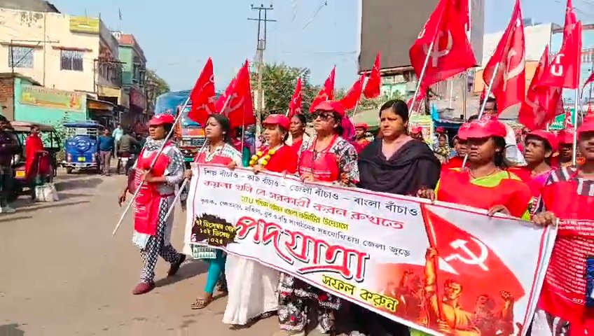 पब्लिक न्यूज भरत पासवान जामुड़िया : सीटू द्वारा आयोजित तीन दिवसीय “शिल्प बचाओ, नौकरी बचाओ, जिला बचाओ एवं बंगाल बचाओ” अभियान के तहत रविवार की सुबह विशाल पदयात्रा की शुरुआत हुई। यह पदयात्रा जामुड़िया के पुनियाटिह से प्रारंभ होकर जामुड़िया बाजार होते हुए आखलपुर के रास्ते नीमा डांगा पहुंची। दोपहर में संक्षिप्त ठहराव के बाद पदयात्रा पुनः शिवडांगा से शुरू हुई और नीघा कोलियरी होते हुए रोटी–बाटी मार्ग पर आगे बढ़ी। निर्धारित कार्यक्रम के अनुसार पहला दिन यहीं समाप्त हुआ। इस पदयात्रा में बड़ी संख्या में कार्यकर्ताओं और समर्थकों ने हिस्सा लिया तथा रोजगार सुरक्षा व उद्योग संरक्षण की मांगों को जोरदार ढंग से उठाया।इस मौके पर महिला नेत्री मीनाक्षी मुखर्जी, सीपीआईएम पश्चिम बर्धमान जिला कमिटी के सचिव गौरांग चटर्जी,सीटू के जिला सचिव प्रवीर मंडल, बस्ती उन्नयन कमिटी के जिला सचिव संजय प्रमाणिक, माकपा नेता तापस कवि, मनोज दत्ता, एमडी कलीमुद्दीन, सुमित कवि, विकास यादव, बुद्ध देव रजक,भरत पासवान, महिला नेत्री कृष्णा भट्टाचार्य, सुभाष बाउरी, कुंतल चटर्जी,सुभीषीश बनर्जी, एमडी कयुम, मुन्ना अहीर मुख्य रूप से उपस्थित थे। इस संबंध में मीनाक्षी मुखर्जी ने कहा कि बंगाल की जनता ने तृणमूल और भाजपा के जिन लोगों को अपना जन प्रतिनिधि चुना था और रोजी रोजगार तथा आम जिंदगी से जुड़ी समस्याओं के निराकरण की जिम्मेदारी दी थी। वह आज धर्म के नाम पर राजनीति कर रहे हैं। मंदिर मस्जिद और अन्य धार्मिक मसलों में लोगों को उलझा कर वह लोगों का ध्यान असली मुद्दे से भटकाना चाहते हैं लेकिन वामपंथी हमेशा रोजी-रुजदार शिक्षा स्वास्थ्य लोगों की सुरक्षा महिलाओं की सुरक्षा विकास औद्योगिकरण पर्यावरण सुरक्षा जैसे मूलभूत मुद्दों पर जोर देती रही है। इन्हीं मुद्दों को उठाते रही है। इसके लिए वामपंथी कार्यकर्ताओं को काफी तकलीफ भी झेलना पड़ रही है लेकिन वह इसके लिए भी तैयार हैं। वहीं माकपा नेता गौरांग चटर्जी ने कहा कि कूचबिहार से काकद्वीप तक बांग्ला बचाओ यात्रा का आयोजन किया गया है। उसे यात्रा के साथ समन्वय रखते हुए वामपंथियों द्वारा जिले में चार जाठा निकाले जा रहे हैं। उन्होंने कहा के पश्चिम वर्धमान जिले के बर्नपुर, आसनसोल, जामुड़िया, रानीगंज, अंडाल, दुर्गापुर, का़कसा और चौथा सांकतोड़िया से चित्तरंजन तक निकलेगा। उन्होंने कहा कि इस अभियान के जरिए वह लोगों का ध्यान पश्चिम बंगाल की मूलभूत सुविधाओं के अभाव की तरफ लाना चाहते हैं। उन्होंने कहा कि आज इस जिले में कई कारखाने बंद पड़े हैं। एक समय इस क्षेत्र को कारखाना की वजह से जाना जाता था लेकिन आज बर्नपुर हो या कुल्टी या रानीगंज या फिर दुर्गापुर हर इलाके में अनगिनत कारखाने बंद पड