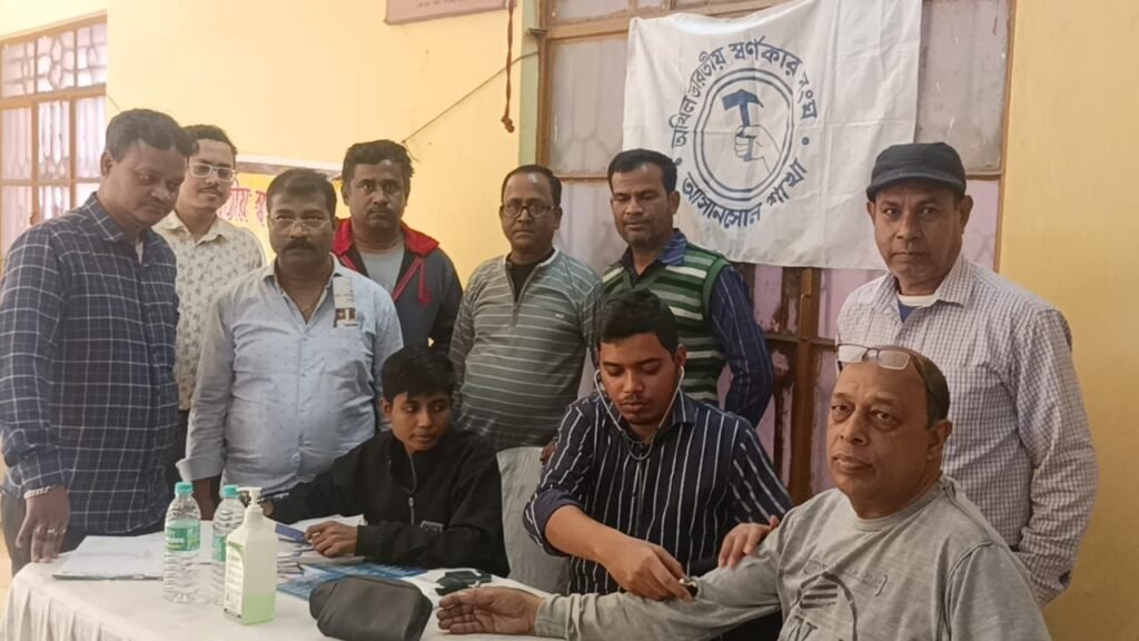 অখিল ভারতীর স্বর্ণকার সংঘের আসানসোল শাখার উদ্যোগে রবিবার আসানসোলের ঘাঁটি গলির জাগরণ ক্লাবে একটি বিনামূল্যে স্বাস্থ্য পরীক্ষা শিবিরের আয়োজন করা হয়। দুর্গাপুরের একটি বেসরকারি হাসপাতালের সহযোগিতায় এই শিবির হয়।