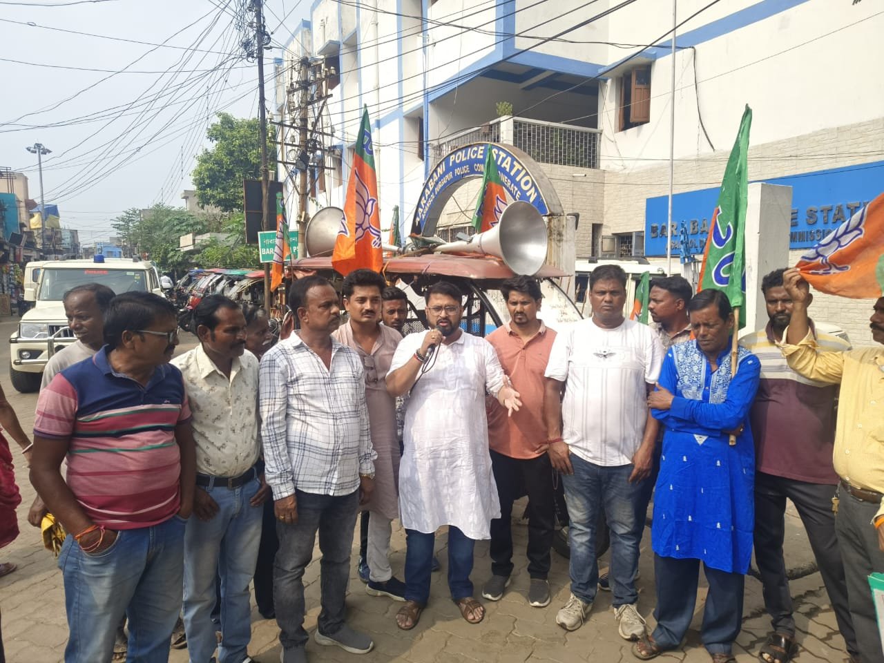 অবৈধ কয়লা খাদান বন্ধের দাবিতে বারাবনি থানায় বিক্ষোভ বিজেপির।