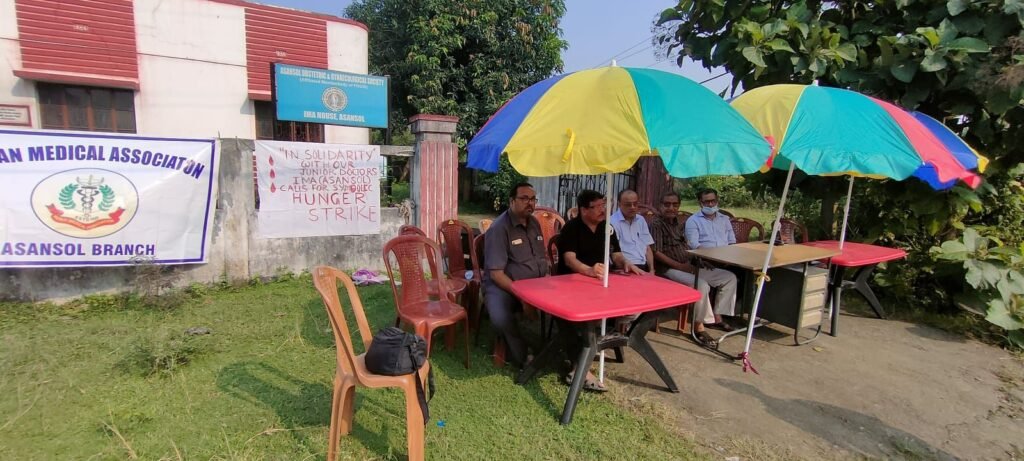 পাবলিক নিউজঃ আলোক চক্রবর্তী আসানসোল :– কলকাতার আর জি কর হাসপাতালের চিকিৎসককে খুন ও ধর্ষণের মামলায় বিচারের দাবিতে কলকাতার জুনিয়র চিকিৎসক ও সিনিয়ার চিকিৎসকরা অনসনে বসেছেন তাদের নৈতিক সমর্থন করে আই এম এ ( ইন্ডিয়ান ম্যাডিক্যাল এ্যসোসিয়সনের) আসানসোল শাখার চিকিৎসকরা তাদের দপ্তরের সামনে একদিনের প্রতীকী অনসন পালন করছেন। অনসন কর্মসূচিতে অংশ গ্রহণ কারী চিকিৎসক ডাঃ পার্থ জানান প্রত্যেক বছর পশ্চিম বঙ্গ বাসী ধূমধাম সহকারে দুর্গোৎসব পালন করে কিন্তু এই বছর দুর্গোৎসব নয় দূর্গাপূজা করছেন, জনগণের মনে দুর্গোৎসব নিয়ে উন্মাদনা দেখা যায় নি উল্টে চারিদিকে বিশাদের ছায়া দেখা গেছে। কলকাতার আর জি কর হাসপাতালের চিকিৎসককে হত্যা ও ধর্ষণের অভিযুক্তদের বিচারের দাবিতে এবং চিকিৎসকদের সুরক্ষা নিশ্চিত করার দাবিতে জুনিয়র চিকিৎসকদের সাথে সিনিয়ার চিকিৎসকরা তাদের সাথে অনসনে বসেছেন ইতিমধ্যে একজন চিকিৎসকের অবস্থা আশঙ্কাজনক ও আরো দুজন চিকিৎসকের অবস্থা খারাপ হয়ে গেছে। কলকাতার ঘটনার বিচারের দাবিতে শুধু পশ্চিম বাংলা নয় সারা ভারতের সাথে বিদেশেও চিকিৎসক সংঘটন কলকাতার জুনিয়র চিকিৎসকদের ডাকা অনশন কর্মসূচিকে সমর্থন করেছেন। পশ্চিম বাংলার চিকিৎসক সংঘটন চিকিৎসা পরিষেবা চালু রেখে প্রতিবাদে মুখর হয়েছেন সোমবার থেকে বেসরকারি হাসপাতালের চিকিৎসক ও হাসপাতালের বাইরে নিজস্ব চেম্বার বন্ধ রেখে বিচারের দাবিতে বিক্ষোভ দেখাবেন। জরুরি পরিষেবা ও অপারেশন বন্ধ করে সাধারণ রুগী দেখবেন। ডাঃ পার্থ জানান চিকিৎসকদের উপর বিভিন্ন সময়ে বিভিন্ন রাজনৈতিক দলের কর্মীরা তাদের জুলুম করে আসছেন তারই প্রতিবাদে চিকিৎসকদের এই প্রতিবাদ,