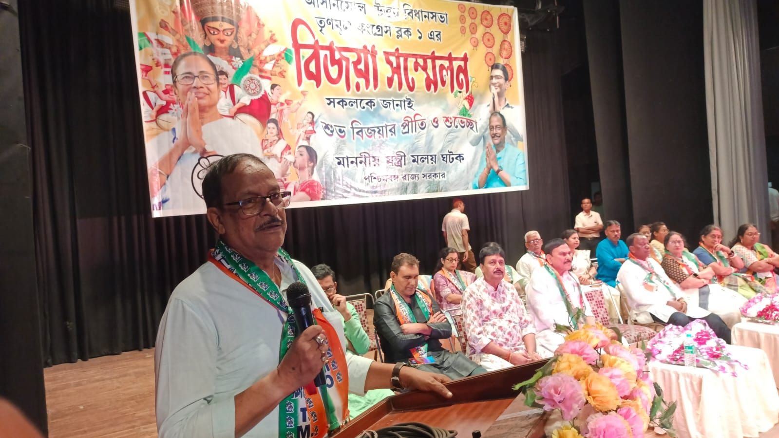 পাবলিক নিউজঃ আসানসোল:–এবারের দূর্গাপুজো ও কার্নিভাল দেখতে না যাওয়া এবং পন্ড করার চক্রান্ত করেছিলো সিপিএম ও বাংলা বিরোধী বেশকিছু মানুষ। যারা আসলে হলো নাস্তিক। শুধু তাই নয়, এইসব মানুষেরা যাতে পুজো কমিটিরা সরকারি অনুদান না নেয়, তারও পরিকল্পনা করেছিলো। কিন্তু বাস্তবে তা হয়নি। শনিবার আসানসোলের রবীন্দ্র ভবনে আসানসোল উত্তর বিধান সভা তৃণমূল কংগ্রেসের ব্লক ১ এর পক্ষ থেকে হওয়া বিজয়া সম্মিলনী থেকে এইভাবে বিরোধীদের আক্রমণ করলেন রাজ্যের আইন ও শ্রম মন্ত্রী মলয় ঘটক। একইসাথে তিনি দলের পুরনো নেতা ও কর্মীদেরকে সাথে নিয়ে কাজ করার জন্য নতুনদের পরামর্শ দেন। পাশাপাশি তিনি লোকসভা নির্বাচনে যেসব ওয়ার্ড ও বুথে দলের প্রার্থীর হার হয়েছে, তার কারণ খুঁজতে ও ঐসব এলাকায় আরো বেশি করে মানুষের কাছে যাওয়ার নির্দেশ দেন। এদিন আসানসোলের রবীন্দ্র ভবনের পাশাপাশি আসানসোলের সেনরেলের শ্রমিক ভবনে ব্লক ২ এর তরফে আরো একটি বিজয়া সম্মেলনে আয়োজন করা হয়েছিলো। দুজায়গাতেই মুখ্য বক্তা হিসেবে উপস্থিত ছিলেন আসানসোল উত্তর বিধান সভা বিধায়ক তথা রাজ্যের আইন ও শ্রম মন্ত্রী মলয় ঘটক।