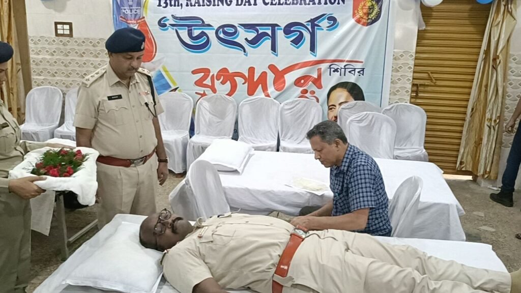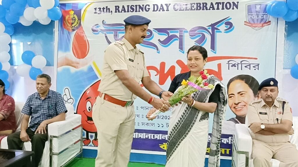 পাবলিক নিউজঃ ডেস্ক কাঁকসা:-আসানসোল দুর্গাপুর পুলিশ কমিশনারেটের ১৩তম প্রতিষ্ঠা দিবস উপলক্ষ্যে সোমবার পানাগড় বাজারের একটি ক্লাবে স্বেচ্ছায় রক্তদান শিবির অনুষ্ঠিত হয়।এদিন এই অনুষ্ঠানে ফিতে কেটে প্রদীপ প্রজ্জ্বলন করে অনুষ্ঠানের সূচনা করেন কাঁকসার এসিপি সুমন কুমার জয়সওয়াল,পশ্চিম বর্ধমান জেলার জেলা পরিষদের কর্মাধক্ষ তথা আইনজীবী বৈশাখী বন্দোপাধ্যায়,কাঁকসার আইসি পার্থ ঘোষ সহ বিশিষ্ট চিকিৎসকরা ও এলাকার বিশিষ্ট ব্যক্তিরা।এদিন রক্তদান শিবিরে পুরুষ ও মহিলা মিলে প্রায় ১০০ জন রক্তদাতা রক্তদান করেন।