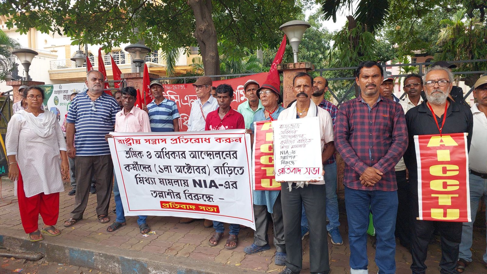 পাবলিক নিউজঃ অলোক চক্রবর্তী আসানসোল :-গত ১ লা অক্টোবর ডিসেরগড় এলাকায় মানবাধিকার সংগঠন অধিকারের মহিলা সদস্যা সুদীপ্তা পালের বাড়ীতে অতর্কিত হানা দেবার প্রতিবাদে রবিবার আসানসোলের রবীন্দ্র ভবনের সামনে প্রতিবাদ সভার আয়োজন করেন এ আই সি সি টি ইউ। সংঘটনের পক্ষ থেকে জানানো হয় কেন্দ্রীয় তদন্ত কারী সংস্থা তাদের সদস্যাকে মিথ্যা মামলায় জড়িয়ে তার বাড়ীতে তল্লাসির নামে কম্পিউটারের হার্ডডিস্ক ও মোবাইল বাজেয়াপ্ত করে নিয়ে গেছে, তদন্ত কারী সংস্থা তল্লাসির কারণ ব্যাখা করতে পারে নি। কেন্দ্রীয় সরকার তাদের বিভিন্ন জায়গায় দূর্ণীতির প্রতিবাদ এবং শ্রমিক সংঘটনের উপর অত্যাচারের বিরুদ্ধে সংঘটন বিভিন্ন জায়গায় শ্রমিকদের স্বার্থে লড়াই করছেন কেন্দ্রীয় সরকার আন্দোলনকে শেষ করে দেবার জন্য পরিকল্পিত হানা করিয়েছেন যাতে সংঘটন আদিবাসী সম্প্রদায়ের জনগণকে সংঘটিত করতে না পারে।