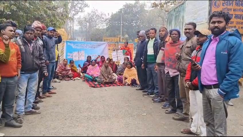 চিনাকুড়ীর খনিতে কাজের দাবিতে বিক্ষোভ।