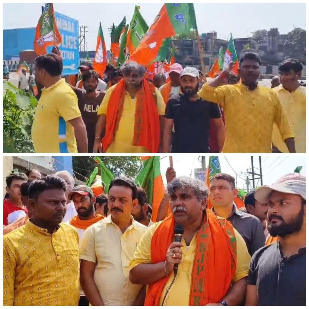 পুলিশের নিষ্ক্রিয়তার প্রতিবাদে অন্ডাল থানার সামনে বিজেপির বিক্ষোভ।