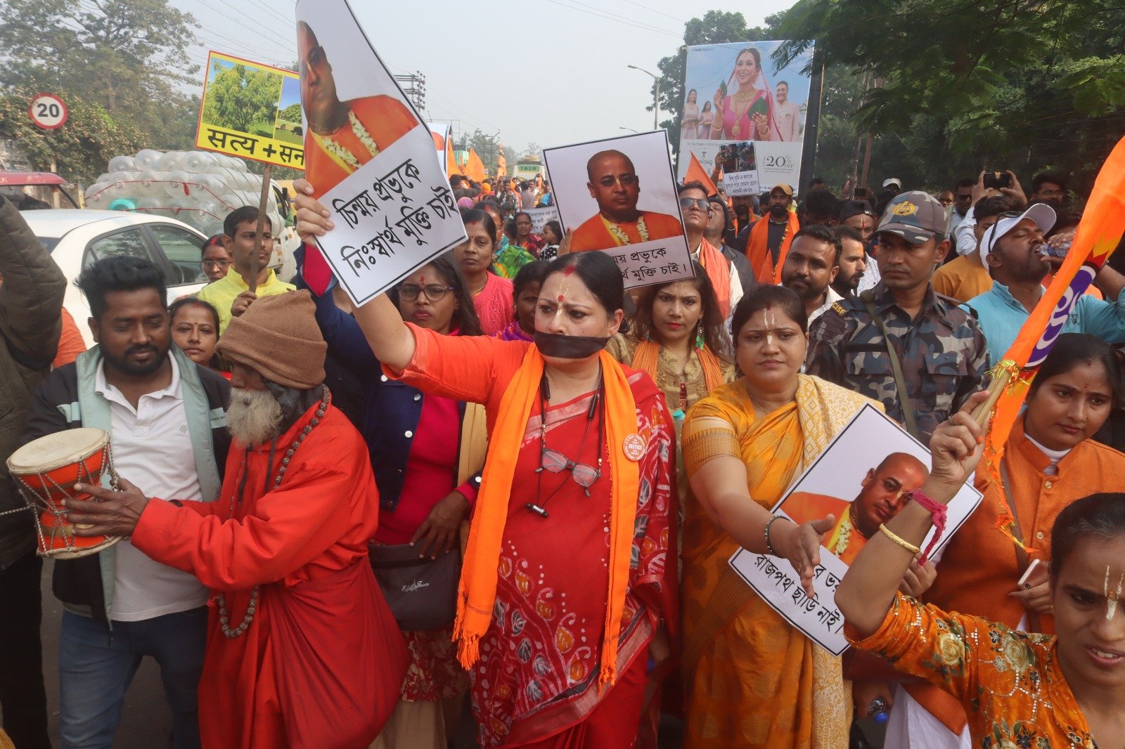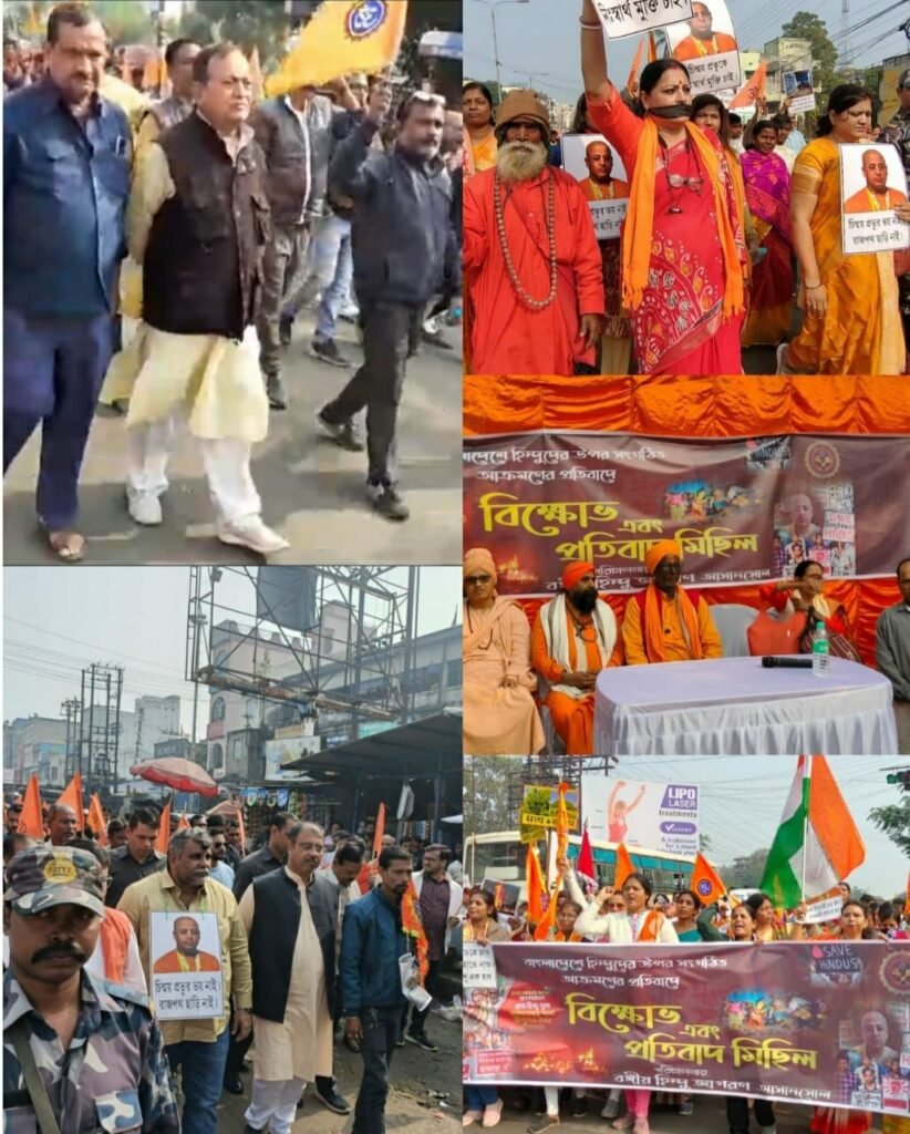 পাবলিক নিউজঃ আসানসোল :– বাংলাদেশে সংখ্যালঘু হিন্দুদের উপর অত্যাচার বন্ধ ও ধৃত ইসকনের সন্ন্যাসী চিন্ময় কৃষ্ণ প্রভুকে অবিলম্বে মুক্তি দেওয়ার দাবি নিয়ে মঙ্গলবার সকালে আসানসোল শহরে বিক্ষোভ মিছিল করলো বঙ্গীয় হিন্দু জাগরণ। এদিন সকালে বঙ্গীয় হিন্দু জাগরণের পক্ষ থেকে প্রতিবাদ মিছিল আসানসোল স্টেশন এলাকা থেকে বেরোয়। পরে সেই মিছিল জিটি রোড, বিএনআর, ভগৎ সিং মোড়, কোর্ট রোড, কোর্ট মোড় হয়ে আসানসোল আদালত চত্বরে ঘড়ি মোড়ে এসে শেষ হয়। সেখানে একটি সভারও আয়োজন করা হয়েছিলো। এই মিছিলে দলীয় পতাকা ছাড়াই বিজেপি একাধিক বিধায়ক ও নেতা উপস্থিত ছিলেন। তারা হলেন, রাজ্য কমিটির সদস্য কৃষ্ণেন্দু মুখোপাধ্যায়, দুই বিধায়ক অগ্নিমিত্রা পাল ও ডাঃ অজয় পোদ্দার, আসানসোল পুরনিগমের প্রাক্তন মেয়র জিতেন্দ্র তেওয়ারি, বিজেপির রাজ্য ট্রেড সেলের কো-কনভেনার সুব্রত ওরফে মিঠু ঘাঁটি, জেলা সভাপতি বাপ্পা চট্টোপাধ্যায়, জেলা সম্পাদক অভিজিৎ রায় সহ অন্যান্যরা। এছাড়াও ছিলেন স্বামী জ্ঞানানন্দ মহারাজ, দয়ানন্দ নিতাই দাস, লতা পাটিল মোদক বঙ্গীয় হিন্দু জাগরণের আসানসোলের প্রমুখ অমিত সরকার ও প্রদীপ সিং। এছাড়াও মিছিলে সাধারণ মানুষের পাশাপাশি একাধিক হিন্দু সংগঠনের সদস্য ও সদস্যারা অংশ নেন। তারা ব্যানার ও প্ল্যাকার্ড হাতে হিন্দু সম্প্রদায়ের উপর অত্যাচারের তীব্র প্রতিবাদ জানান। পাশাপাশি বাংলাদেশে ইসকনের সন্ন্যাসী চিন্ময় কৃষ্ণ প্রভুকে জেল থেকে অবিলম্বে মুক্তি দেওয়ার দাবি লেখা হয়। তারা বলেন, বাংলাদেশে মহঃ ইউনিসের নেতৃত্বে অন্তর্বর্তীকালীন সরকারের কাছে অবিলম্বে ভারত সরকার দাবি জানাক , যাতে বাংলাদেশে হিন্দুদের ওপর অত্যাচার বন্ধ করা হয়। অমিত সরকার বলেন, ভারতবর্ষের স্বাধীনতার আগে যে সমস্ত বুদ্ধিজীবী, কবি, সাহিত্যিক, মহান বিজ্ঞানী ও স্বাধীনতা সংগ্রামী ভারতবর্ষের স্বাধীনতার জন্য জীবন উৎসর্গ করেছেন, তাঁদের মধ্যে অনেক কবি, সাহিত্যিক ও বুদ্ধিজীবী রয়েছেন যারা ভারতে এসে তাদের প্রতিভাকে পরিশ্রুত করেছে। বর্তমানে বাংলাদেশে হিন্দুদের সংখ্যা অনেকটাই কমে গেছে। এটা উদ্বেগের বিষয় বলে তিনি বলেন, বাংলাদেশে হিন্দুদের ওপর যেভাবে নির্যাতন করা হচ্ছে তা অবিলম্বে বন্ধ করা উচিত।