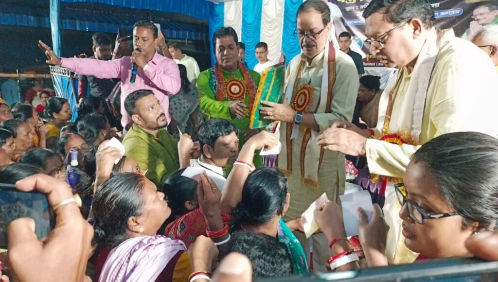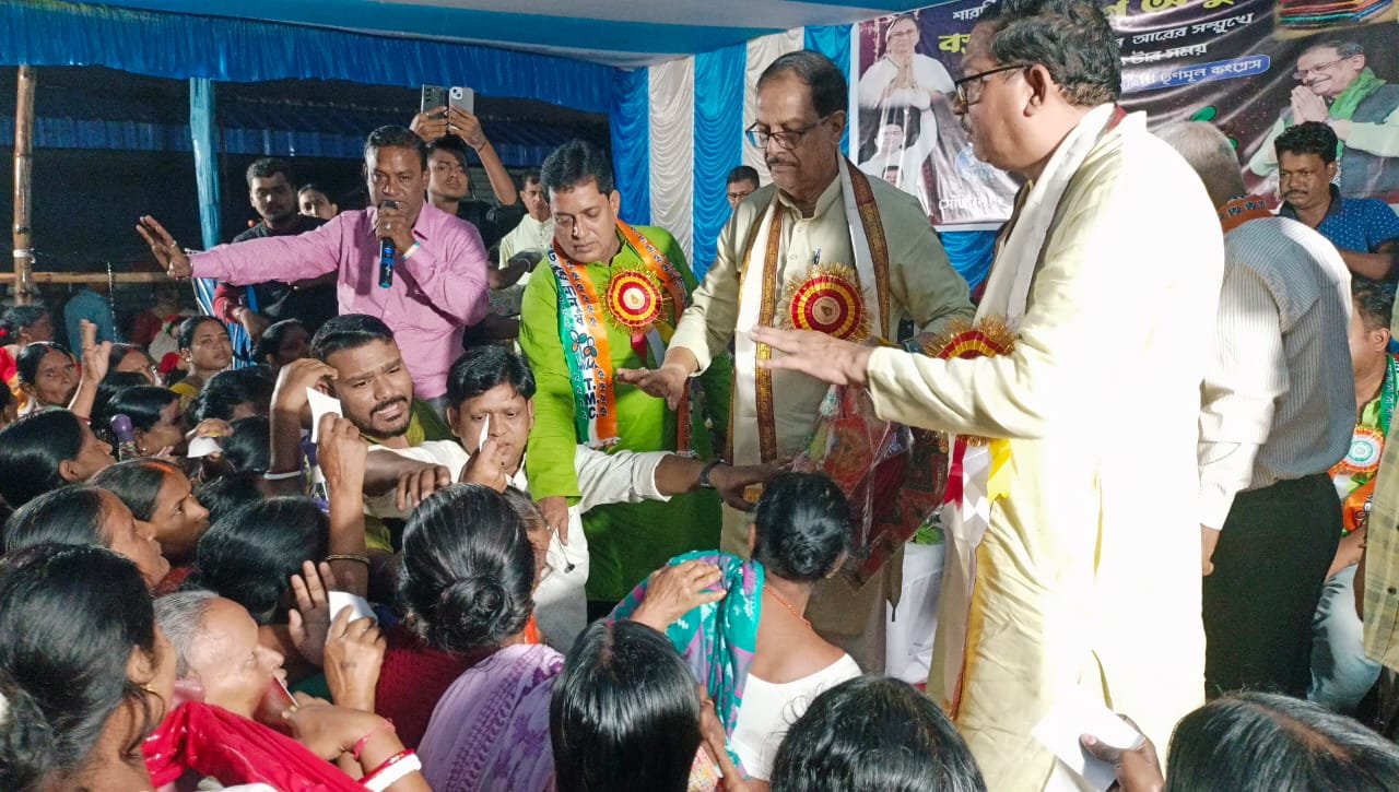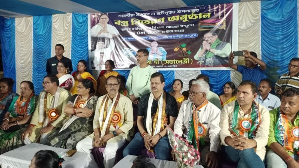 পাবলিক নিউজঃ অলোক চক্রবর্তী আসানসোল:– শণিবার রাত্রে আসানসোল রবীন্দ্র ভবনের সামনে নর্থ ব্লক মহিলা তৃণমূল কংগ্রেসের পক্ষ থেকে বিজয়াদশমী ও ছট পূজা উপলক্ষে প্রায় ৯০০ জন মহিলাকে শাড়ী বিতরণ এবং মিষ্টিমুখ করালেন রাজ্যের শ্রম ও আইন মন্ত্রী মলয় ঘটক। শাড়ী বিতরণ অনুষ্ঠানে আসানসোল পৌরনিগমের ডেপুটি মেয়র অভিজিৎ ঘটক, মেয়র পরিষদের সদস্য গুরুদাস চ্যাটার্জী, মহিলা তৃণমূল কংগ্রেসের সভাপতি অসীমা চক্রবর্তী, বরো চেয়ারম্যান রাজেশ তিওয়ারি সহ বিভিন্ন ওয়ার্ডের কাউন্সিলর ও মহিলা কর্মীরা উপস্থিত ছিলেন। মলয় ঘটক উপস্থিত মহিলাদের উদ্দেশ্যে জানান সারা দেশে একজন মহিলা মূখ্যমন্ত্রী আছেন যিনি মহিলাদের ব্যাপারে চিন্তা করেন তিনি মহিলাদের জন্য লক্ষীর ভান্ডার সহ একাধিক প্রকল্প এনেছেন। নিম্নচাপ দানার গতিপথ নিয়ে তিনি উদ্বিগ্নতার সাথে রাতভর কন্ট্রোল রুমে কাটিয়েছেন এবং প্রত্যেক মুহূর্তের খবর নিয়েছেন। পূজোর সময় মহিলাদের নতুন শাড়ী দিতে পারেন নি তাই আসন্ন ছট পূজার আগে মহিলাদের শাড়ী বিতরণ করার নির্দেশ দিয়েছেন।