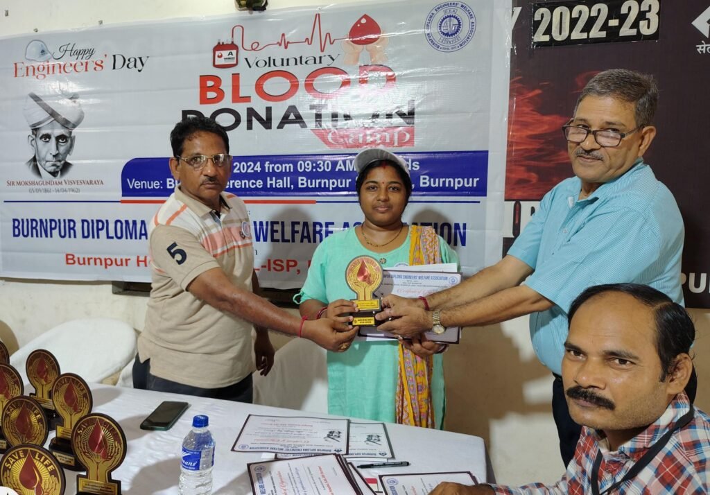 রক্তদান শিবিরে অংশগ্রহণকারী সকল রক্তদাতাদের শংসাপত্র ও স্মারক (মেমেন্টো) দিয়ে সম্মানিত করা হয়। বার্নপুর ডিপ্লোমা ইঞ্জিনিয়ার্স ওয়েলফেয়ার অ্যাসোসিয়েশনের সাধারণ সম্পাদক লব কুমার মান্না আমাদের প্রতিনিধি কে বলেন, বার্নপুর হাসপাতালের সহযোগিতায় এই মহৎ উদ্দেশ্যে প্রথমবারের মতো এমন একটি ক্যাম্প আয়োজন করতে পেরে আমরা অত্যন্ত গর্বিত ও অভিভূত। তিনি আরও বলেন, বার্নপুর ডিপ্লোমা ইঞ্জিনিয়ার্স ওয়েলফেয়ার অ্যাসোসিয়েশন সেইল ইস্কো স্টিল প্ল্যান্টে কর্মরত সকল ডিপ্লোমা ইঞ্জিনিয়ারদের পদবী, উচ্চ শিক্ষা এবং অন্যান্য বিষয় অন্তর্ভুক্ত করে সংগঠনকে শক্তিশালী করার লক্ষ্যে কাজ করার পাশাপাশি, সমাজের প্রতিও দায়বদ্ধ এবং এই উদ্দেশ্যে এই স্বেচ্ছায় রক্তদান শিবিরের আয়োজন করা হয় । এই শিবিরের তত্ত্বাবধানে ছিলেন অ্যাসোসিয়েশনের অতিরিক্ত সাধারণ সম্পাদক মীর মুসাররফ্ আলী আমাদের প্রতিনিধি কে জানান ক্যাম্প থেকে মোট পঁচিশ ইউনিট রক্ত সংগ্রহ করা হয় যা বার্নপুর হাসপাতাল ব্লাড ব‍্যাঙ্কে দেওয়া হয় ।অ্যাসোসিয়েশনের পক্ষ থেকে সভাপতি সোমনাথ মাজি অনুষ্ঠানে অংশগ্রহণকারী সকল রক্তদাতা, অতিথি, বার্নপুর হাসপাতালের ব্লাড ব্যাঙ্কের কর্মীবৃন্দ ও অ্যাসোসিয়েশনের সদস্যদের ধন্যবাদ জ্ঞাপন করেন ।