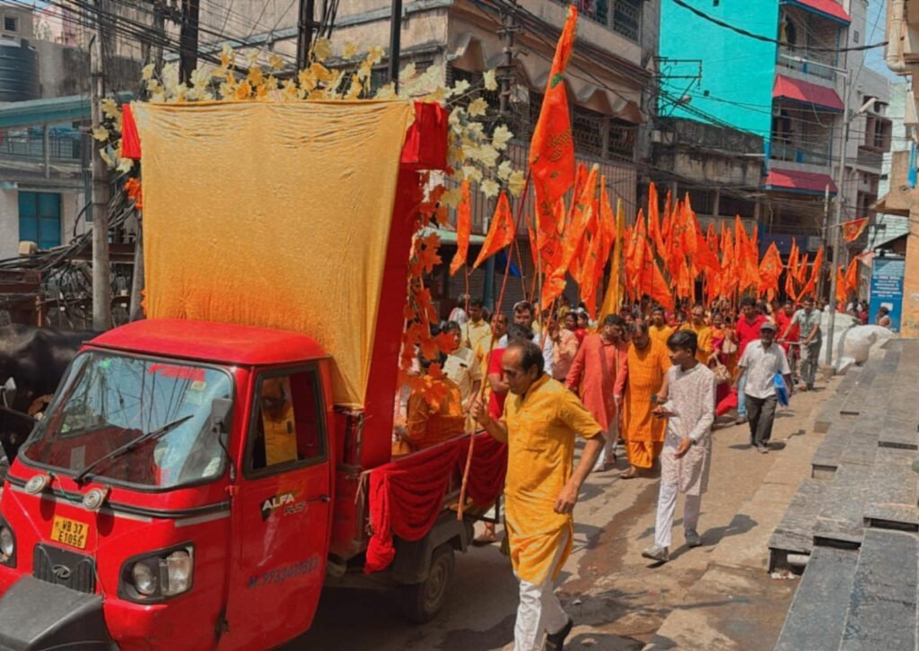 पब्लिक न्यूज आसनसोल:– हनुमान जयंती के अवसर पर आज आसनसोल गौशाला से राहा लेन श्याम मंदिर तक एक विशाल शोभायात्रा निकाली गई। इस शोभायात्रा में बड़ी संख्या में श्रद्धालु उपस्थित थे जिन्होंने अपने हाथों में पवित्र ध्वजाएं थाम रखे थे बजरंगबली के नाम के जयकारे लगाते हुए यह शोभायात्रा आगे बढ़ी यहां पर रह-रह कर भक्तों ने जय श्री राम के नारे भी लगाए शोभायात्रा में शामिल लोगों में एक अलग ही उत्साह नजर आ रहा था यह शोभायात्रा गौशाला से निकली और श्याम मंदिर परिसर में आकर समाप्त हुई।