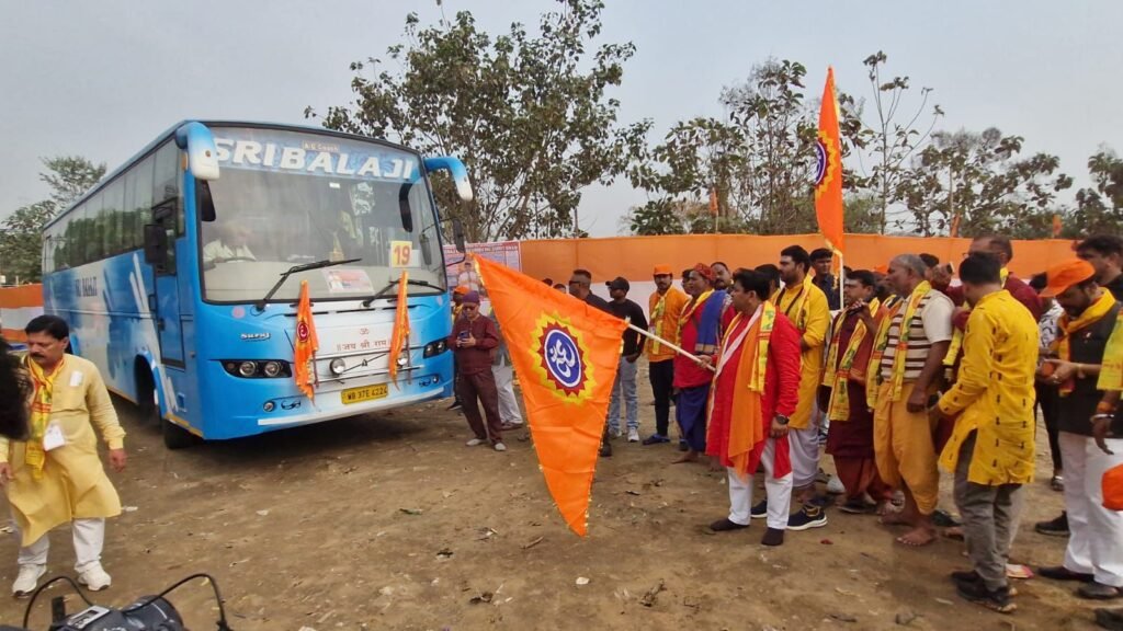 पब्लिक न्यूज आसनसोल : समाजसेवी कृष्णा प्रसाद द्वारा घाघरबूढ़ी मंदिर प्रांगण से जिले के विभिन्न प्रांतो से आए श्रद्धालुओं को बसों से प्रयागराज में महाकुंभ के लिए रवाना किया गया। यहां तीन दिनों से धार्मिक अनुष्ठान का आयोजन किया गया था । पूजा अर्चना करने के उपरांत कृष्णा प्रसाद के के नेतृत्व में 26 से ज्यादा बस और 15 से ज्यादा चार पहिया वाहनों में श्रद्धालु प्रयागराज के लिए रवाना हुए। उन्होंने झंडी दिखाकर बसों को रवाना किया। इस बारे में कृष्णा प्रसाद ने बताया कि इस क्षेत्र के श्रद्धालुओं ने उनसे अनुरोध किया था कि वह उन्हें प्रयागराज महाकुंभ के पुण्य स्नान के लिए ले जाएं उनके अनुरोध को स्वीकार करते हुए उन्होंने यह भगीरथ प्रयास किया है और आज वह सभी प्रयागराज के लिए रवाना हुए हैं। उन्होंने कहा कि इसमें मां घागर बुढ़ी देवाधिदेव महादेव तथा मां गंगा का आशीर्वाद उन्हें प्राप्त हुआ जिस वजह से वह इस असंभव से लगने वाले कार्य को संपन्न करने में समर्थ हुए उन्होंने कहा कि इस यात्रा में उन्होंने श्रद्धालुओं की सुरक्षा और उनके स्वास्थ्य को ध्यान में रखते हुए सभी इंतजाम किए हैं चिकित्सा सेवाओं के साथ-साथ सुरक्षा को ध्यान में रखते हुए बाउंसर भी रखे गए हैं और श्रद्धालुओं को परिचय पत्र टोपी और उत्तरीय दिया गया है सभी श्रद्धालुओं का पंजीकरण करवाया गया है और उनका मोबाइल नंबर भी पंजीकृत है इसलिए किसी भी श्रद्धालु के कहीं भी भटकने की कोई गुंजाइश नहीं है। कृष्णा प्रसाद ने कहा कि कल एक बहुत ही ऐतिहासिक दिन होने वाला है प्रधानमंत्री नरेंद्र मोदी द्वारा मध्य प्रदेश के बुंदेलखंड में बाबा बागेश्वर धाम धीरेंद्र शास्त्री द्वारा निर्माण होने वाले निशुल्क कैंसर अस्पताल का शिलान्यास किया जाएगा उन्होंने कहा कि यह भारत के इतिहास में एक ऐतिहासिक क्षण होगा।