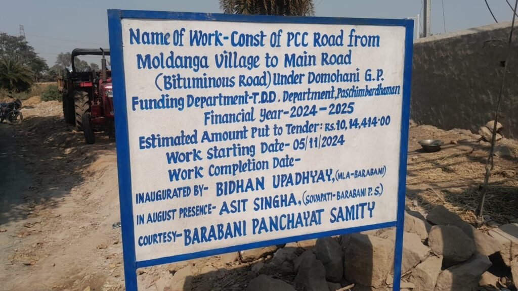 পাবলিক নিউজ মনোজ শর্মা বারাবানি:— আসানসোলে বারাবনি ব্লকের দোমহানি গ্রাম পঞ্চায়েতের মোলডাঙ্গা গ্রাম থেকে মেন রাস্তা পর্যন্ত তৈরি করা হচ্ছে। ২৪০ মিটার ঢালাই রাস্তার শনিবার উদ্বোধন করা হয়। এই রাস্তা তৈরিতে ব্যয় হবে ১০ লক্ষ টাকারও বেশি। এদিন নারকেল ফাটিয়ে ও ফিতে কেটে আনুষ্ঠানিক উদ্বোধন করলেন বারাবনি পঞ্চায়েত সমিতির সভাপতি অসিত সিং। এছাড়াও উপস্থিত ছিলেন বারাবনি থানার ওসি দিব্যেন্দু মুখোপাধ্যায়, দোমহানি গ্রাম পঞ্চায়েতের প্রধানের প্রতিনিধি মলয় মন্ডল, পঞ্চায়েত সদস্য শক্তি দাস, গোলাম মোর্তাজা ও বারাবনি পঞ্চায়েত সমিতির শিক্ষা কর্মাধ্যক্ষ তাপস ঘোষ। জানা গেছে, রাজ্য সরকারের পিসিসি দপ্তরের ফান্ড থেকে এই রাস্তা তৈরির অর্থ বরাদ্দ করা হয়েছে।