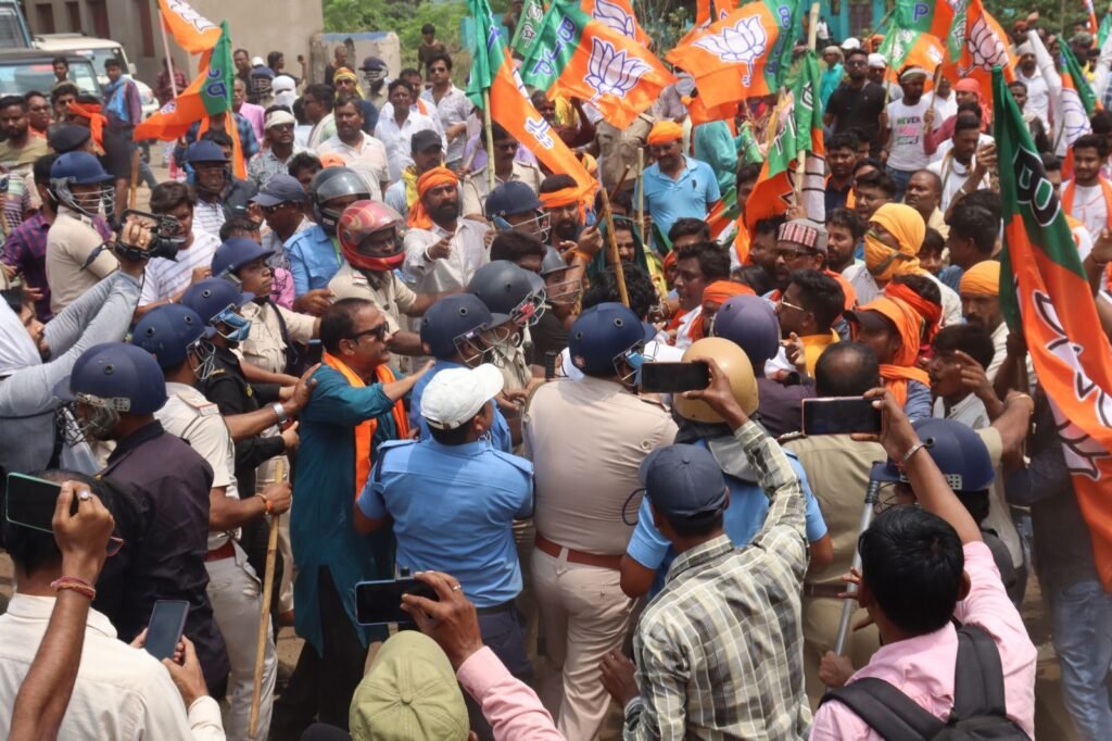 পাবলিক নিউজ আসানসোল :– বিজেপির মিছিলকে কেন্দ্র করে বৃহস্পতিবার ধুন্ধুমার কান্ড ঘটলো পশ্চিম বর্ধমান জেলার আসানসোলের বারাবনি থানার ইটাপাড়া খোলামুখ খনি বা ওসিপি এলাকায়। খোলামুখ কয়লাখনিতে কাজ করা কর্মীদের অধিকার সহ একাধিক দাবিতে বিজেপির ডাকা এদিনের এই মিছিল ও ডেপুটেশন দেওয়ার কর্মসূচিতে পুলিশের বাধা দেওয়ার অভিযোগ উঠেছে। পুলিশের দেওয়ার ব্যারিকেড আমডিহা মোড়ে বিজেপির নেতা ও কর্মীরা ভাঙ্গার চেষ্টা করে। যা নিয়ে পুলিশের সঙ্গে তাদের ধস্তাধস্তি বেঁধে যায়। পরিস্থিতি সামাল দিতে পুলিশ লাঠিচার্জ করে বলে অভিযোগ। তাতে মনু রায় আহত হয়েছেন বলে দাবি করা হয়েছে। যদিও পুলিশের তরফে লাঠিচার্জ করার অভিযোগ অস্বীকার করা হয়েছে।