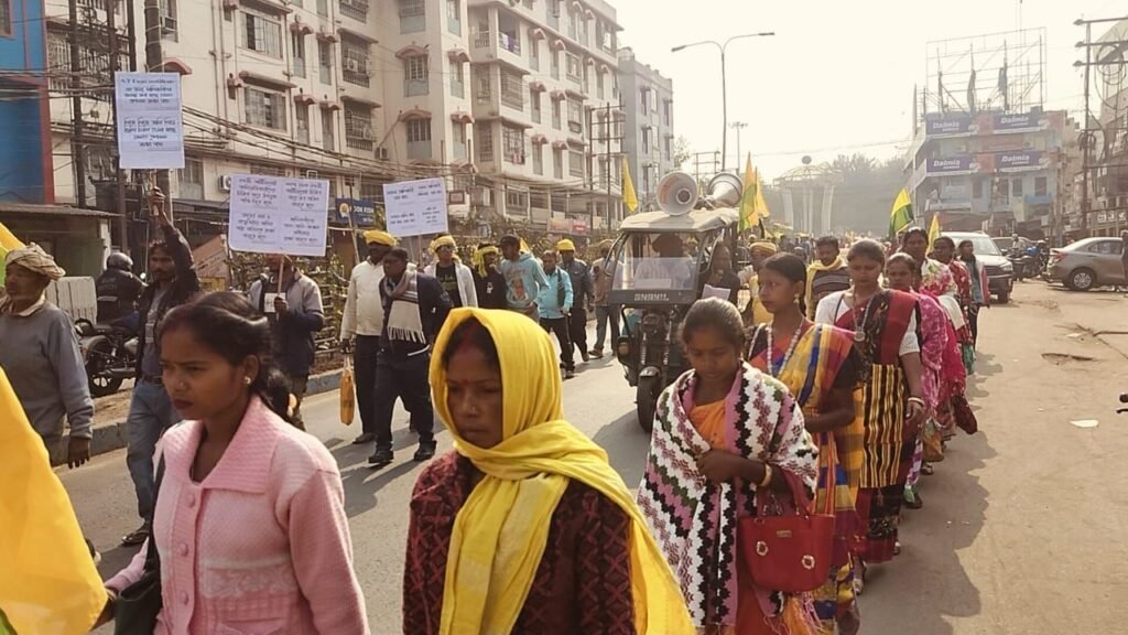 পাবলিক নিউজঃ অলোক চক্রবর্তী আসানসোল:– মঙ্গলবার সকালে জেলা শাসক দপ্তরে পশ্চিম বর্ধমান জেলার জাকাত মাঝি সংঘটনের সদস্যরা বিভিন্ন দাবি নিয়ে বিক্ষোভ দেখান। ভারত জাকাত মাঝি সংঘটনের সদস্যদের দাবি তাদের মাতৃভাষা চালু করতে হবে যাতে তাদের সম্প্রদায়ের জনগণ শিক্ষিত হতে পারে, সরকারি জমি তাদের নামে পাট্টা দিতে হবে, তাদের জমি মাফিয়ারা দখল করা বন্ধ করতে হবে। বিশাল মিছিল সহকারে আদিবাসী সম্প্রদায়ের আবালবৃদ্ধবনিতা একত্রিত হয়ে জেলা শাসক দপ্তরে গিয়ে তাদের দাবি সম্বলিত স্মারকলিপি জমা দিলেন।