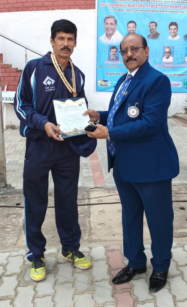 পাবলিক নিউজ আলোক চক্রবর্তী আসানসোল:–ব্যাঙ্গালুরুর কান্তীরভা স্টেডিয়ামে ৪৫তম জাতীয় মাস্টার্স অ্যাথলেটিক চ্যাম্পিয়নশিপে অংশগ্রহণ করে বার্নপুরের সেল আইএসপি বা ইস্কো কারখানা ( স্টিল প্ল্যান্ট) সুব্রত পাল ১০০ মিটার হার্ডেলসে রুপোর পদক জিতলেন। গত ৪ মার্চ চ্যাম্পিয়ানশিপে এই ইভেন্টটি হয়। সুব্রত পাল কিশোর অবস্থা থেকেই একজন ফুটবল খেলোয়াড় এবং একজন অভিজ্ঞ ক্রীড়াবিদ হিসেবে পরিচিত। সুব্রত পাল বার্নপুর ইস্কো কারখানা বা স্টিল প্ল্যান্টের ইডি বা এক্সিকিউটিভ ডিরেক্টরের (অর্থ ও হিসাব) অফিসের সেকশন অফিসার। এর আগে তিনি হুগলির কোন্নগরে ৩৯ তম পশ্চিমবঙ্গ রাজ্য মাস্টার্স অ্যাথলেটিক্স চ্যাম্পিয়নশিপে অংশগ্রহণ ১০০ মিটার হার্ডেলস, লং জাম্প এবং ট্রিপল জাম্প ইভেন্টে তিনটি স্বর্ণ পদক জিতেছিলেন।